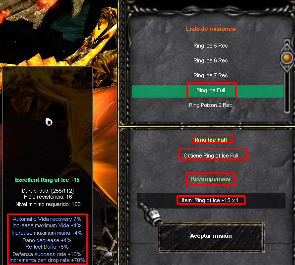 Debes dirigirte al NPC Milan. Él es el encargado de procesar tus anillos y pendientes. El sistema funciona por niveles: entregas tus accesorios actuales más ciertos requisitos para recibir una versión mejorada con incrementos de vida y opciones adicionales, hasta alcanzar el grado Full.